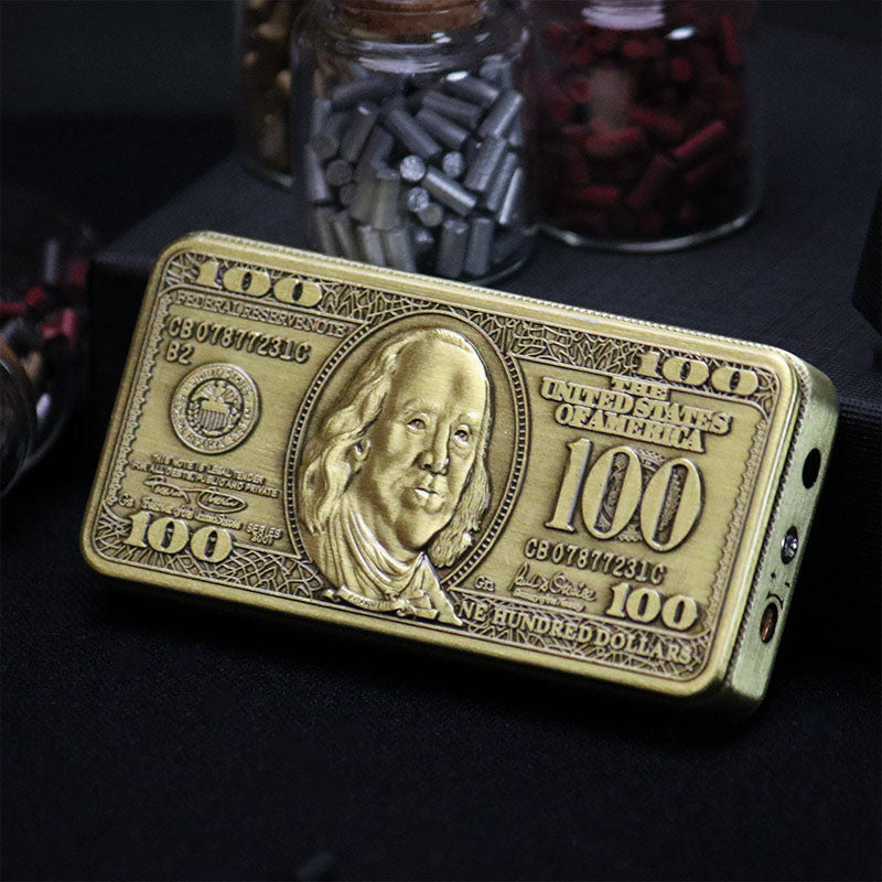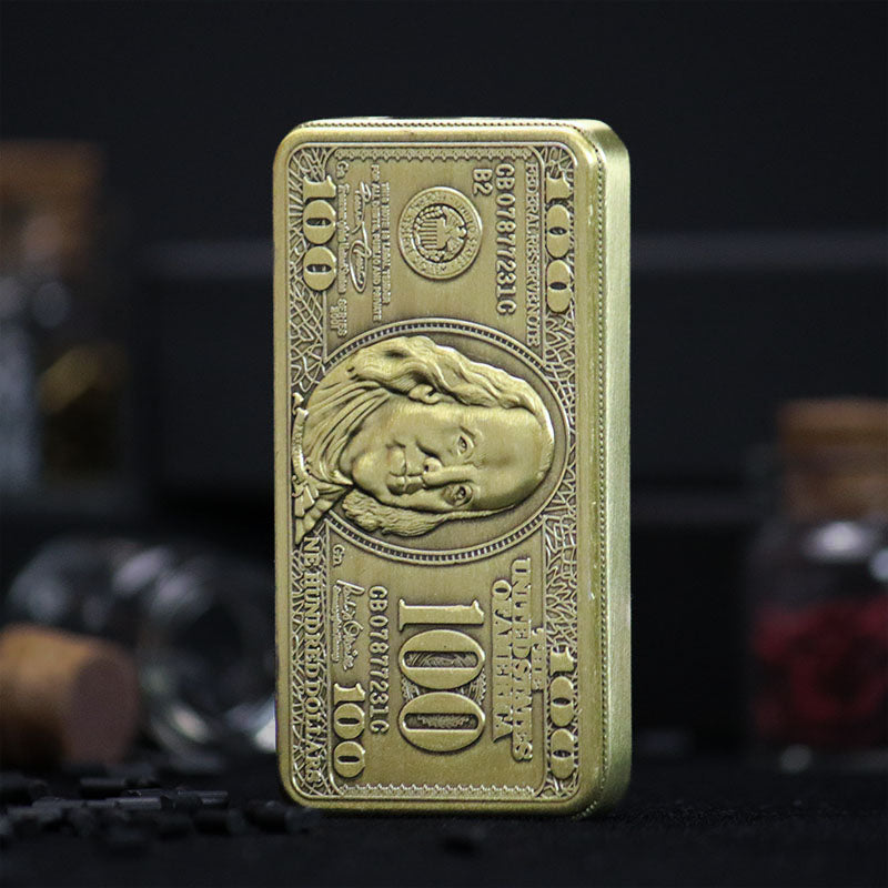 The Benjamin Torch is a sleek metal lighter, crafted to resemble an American $100 bill.